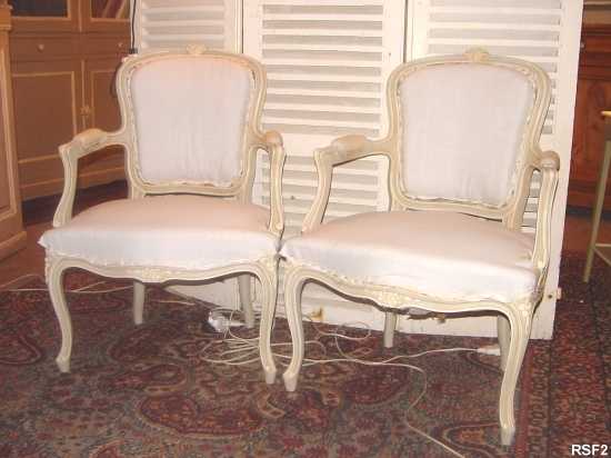 Paire de fauteuils de style Louis XV, début XX° siècle, décor Gustavien, tapisserie neuve et tissu à la demande
